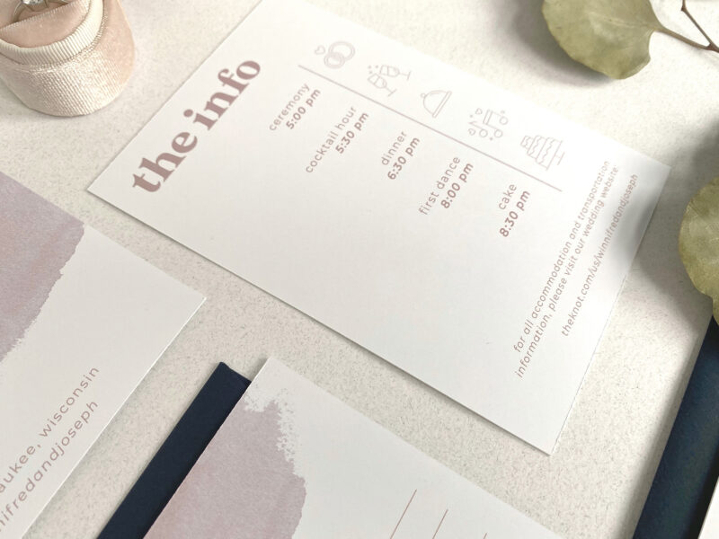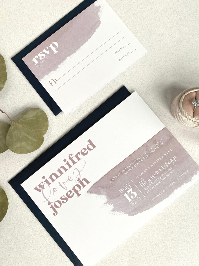 The Quirky is perfect for the couple who is looking for their wedding to be a little more whimsical and out of the box. With a printed watercolor detail, a vintage font, and modern calligraphy, The Quirky is the perfect first impression to get your guests excited for a wedding that is as unique as your love.